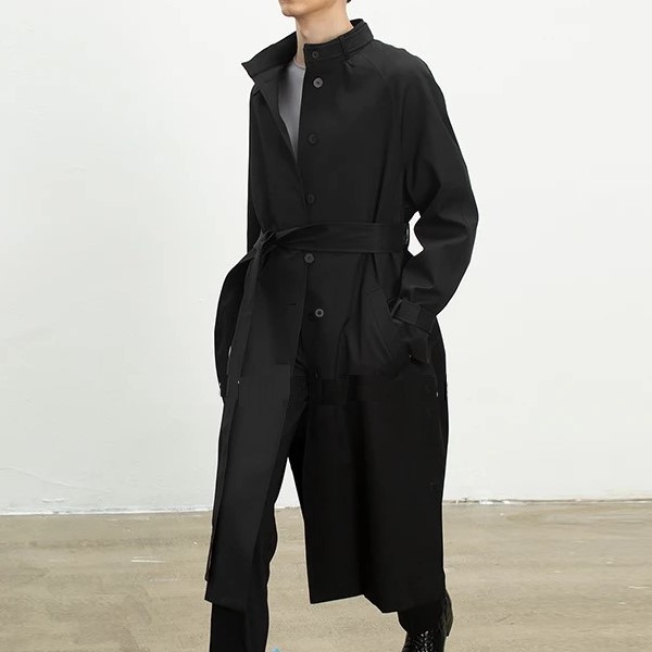 Mens Loose Standing Collar Trench Coat
